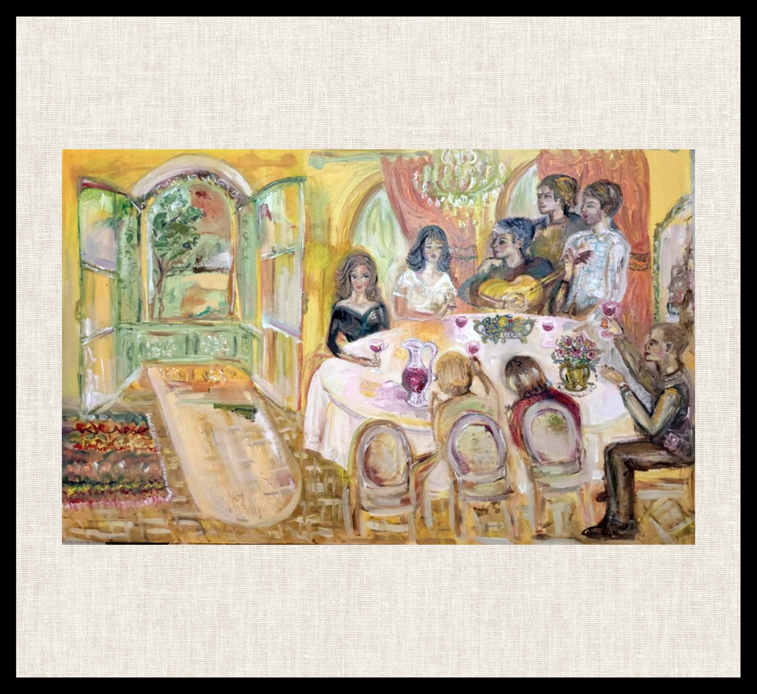 „თბილისური ნადიმი“ ხელოვანის ოჯახურ ისტორიაში დაფუძნებული ამბავია. ნამუშევარი ასახავს ქალაქის ერთ ჩვეულებრივ დღეს — მზის სხივებით განათებულს და ქართული ჰანგებით გაჯერებულს, სადაც მოგონებები, დღესასწაული და ყოველდღიური მშვენიერება ერთმანეთს ერწყმის.